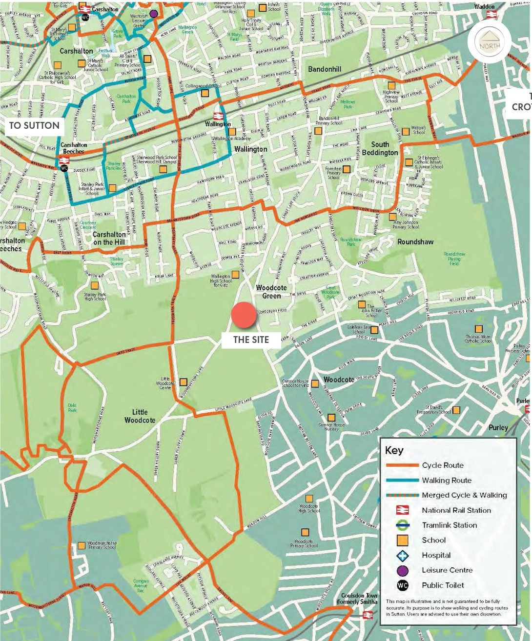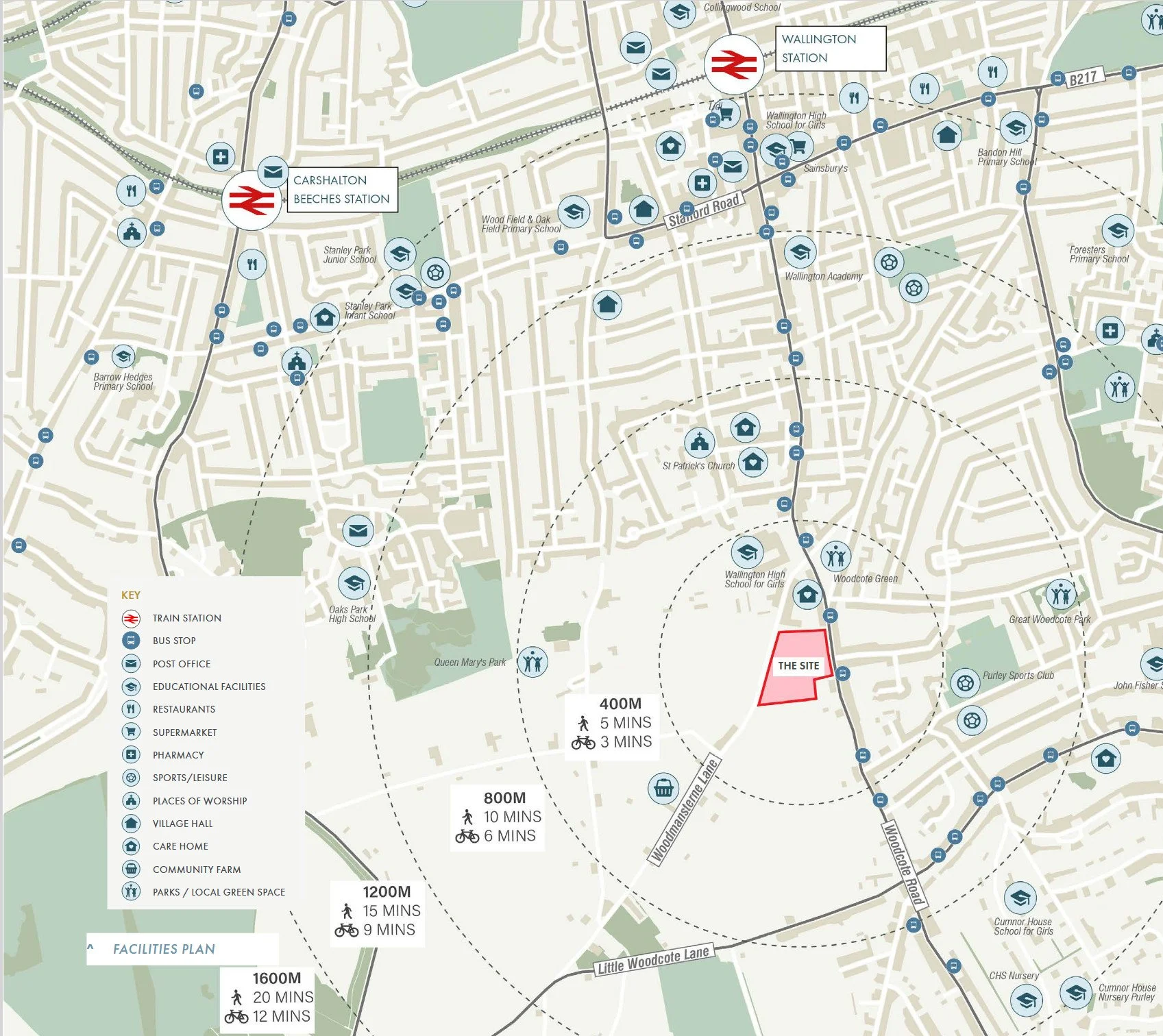 The site is located within approximately a 20-minute walking distance or an 8-minute cycling distance of Wallington Town Centre, which provides a comprehensive range of community facilities and services, including but not limited to: